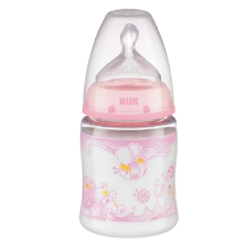 El biberón Nuk First Choice Leche en color rosa está diseñado especialmente para niñas, presentando tiernos motivos que encantarán a los más pequeños.